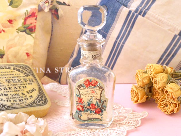 ローズ)という商品名のオクタゴン(八角形)にカットされたガラスのフタの付いたパルファンフラコン(パ
