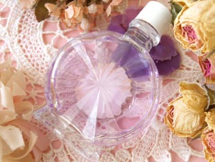 こちらはプラスチック製の白いフタの付いたパルファンフラコンで、放射線状にカットされたような美し