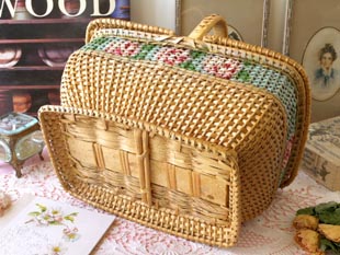 おそらく1930年代にフランスで製造されたローズフルールピクニックロタンオジエパニエです。こちらは