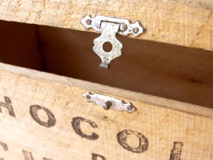 ショコラが入っていたボワ(木)製のショコラボワットです。ショコラは元々は苦い散薬の錠剤のコーティ