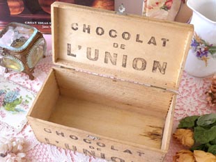 け閉めできるショコラボワットで、フタの裏側と本体の正面にはChocolat de l'Unionと書かれていてシャ