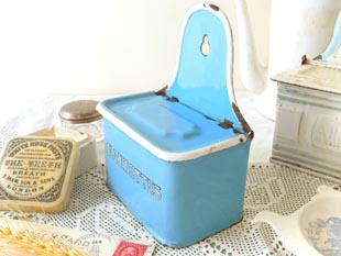 ティークホウロウ雑貨の美しさを実感させてくるフランセブルー&ブランシュアリュメットボワットです。