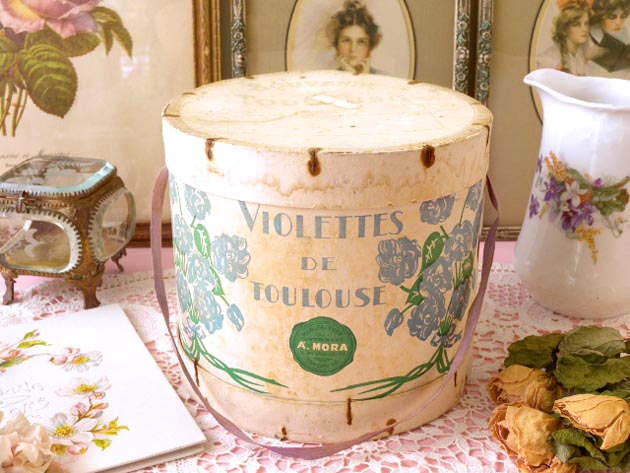 作された厚紙製のフタ付きのボワットで、フタにはSouvenir de Toulouse(トゥールーズの土産物)と書か