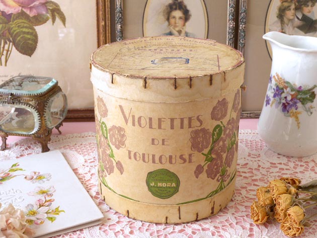 作された厚紙製のフタ付きのボワットで、フタにはSouvenir de Toulouse(トゥールーズの土産物)