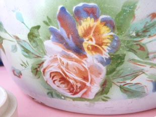 ウの剥がれやサビがあってもエレガントな雰囲気はすたれないですね。ローズとパンセのココットは見て