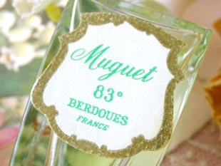 取りがされたラベルにはヴェール(グリーン)でMuguet 83 Berdoues Franceのロゴと文字がデザインされて