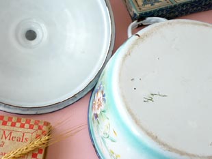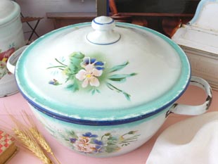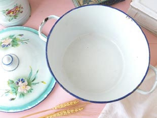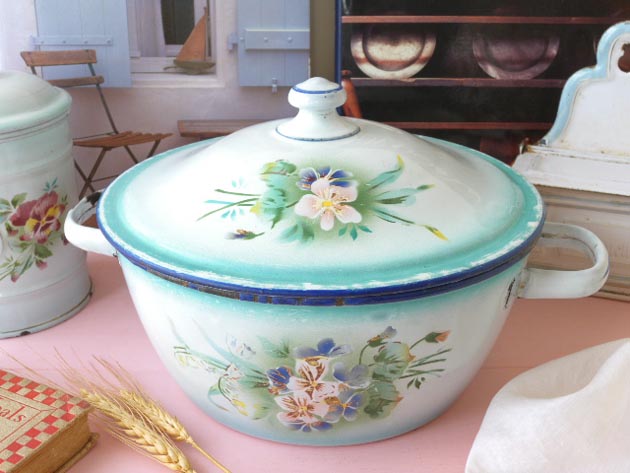 フレンチ製品は昔からデザインオリティーが高くホウロウの剥がれやサビがあってもエレガントな雰囲気