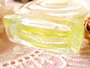 ルミエミュゲ)という商品名のオーデコロンフラコンです。こちらはレアなブラスチック製の白いフタの付
