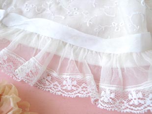 薄いコットンの生地が使われていて二枚仕立ての作りになっています。フチにはダンテル(レース)のフリ