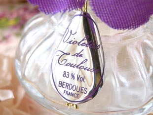 感じです。シルバーの紐付きのラベルにはViolettes de Toulouse 83 Vol. Berdoues Franceと書かれてい