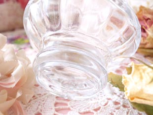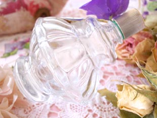 こちらはプラスチック製のゴールドのフタの付いたパルファンフラコンで、花びらのような美しいレリー