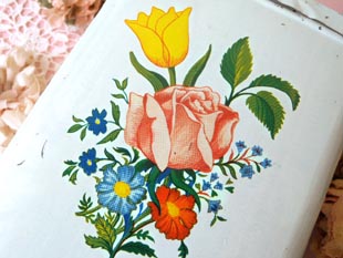 ト(ボックス)で、本体はブランシュ(ホワイト)カラーにロゼローズとジョーヌ(イエロー)チューリップと