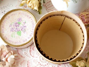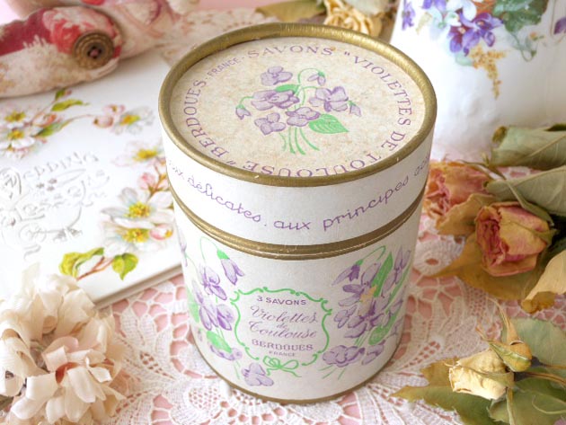 ようです。こちらは3個の丸いサボンが入っていた筒型のサボンボワット(ソープボックス)で、本体には