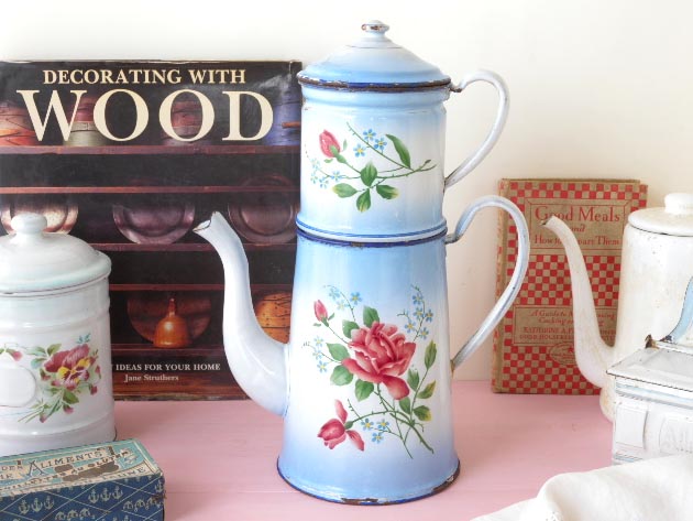 ウ製のブルークレール&ブランシュローズカフェティエールです。コーヒーは1800年頃にフランス人の