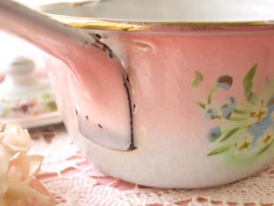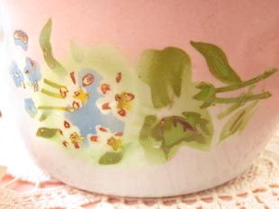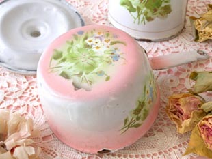 写真のように多少のホウロウの剥がれがありますがヴィオレットの花のイラストに擦れはほとんどなくと