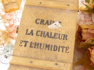 (高温多湿を避けてください)と書いてありシャビーでオシャレでとてもいい感じです。また、凝ったフォ