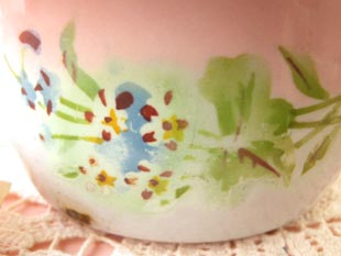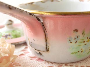 写真のように少しホウロウの剥がれがありヴィオレットの花のイラストに多少の擦れがあります。その他、
