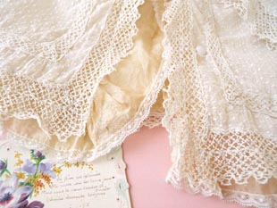 にかけて繊細なダンテル(レース)が使われていてオシャレで可愛くてとてもいい感じです。また、合わせ