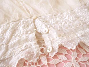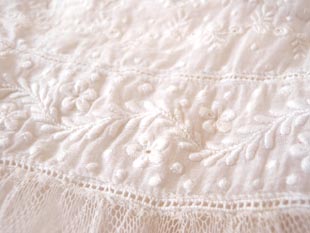 てもいい感じです。また、胸元と肩や見頃ろから裾にかけて繊細なダンテル(レース)が使われているのも