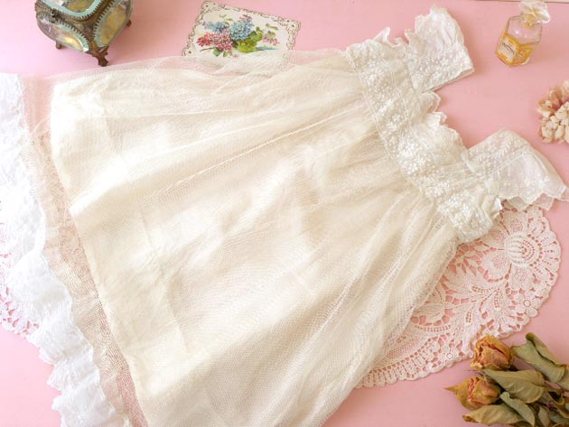 ルダンテルプーペキャミソールローブです。こちらはレアなおそらくチュールレースとシルクのファブ