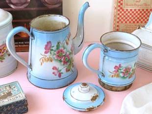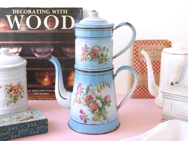 ウ製のブルークレール&ブランシュローズカフェティエールです。コーヒーは1800年頃にフランス人の