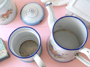 サビがほとんどなく中も驚くほどきれいです。75年以上も前に製造されたカフェティエールですが、ブ