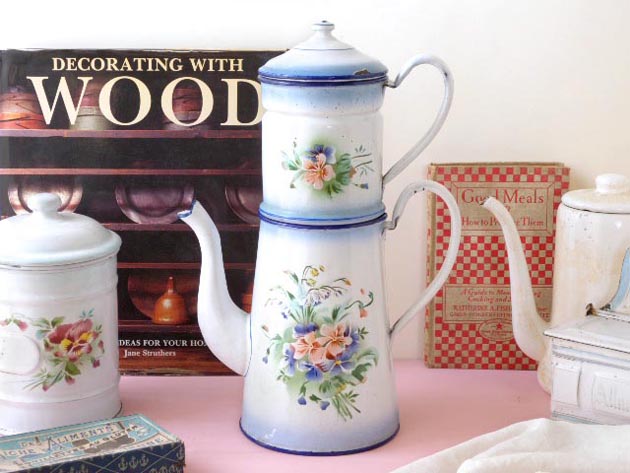 ルークレールやブルーヴィオレットの発色が良くとてもきれいで当時のフレンチホウロウ製品の美しさが