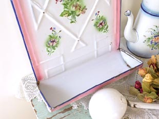 ヴィオレットのイラスト部分にはホウロウの剥がれがなくとてもきれいです。多少のホウロウの欠けやサ