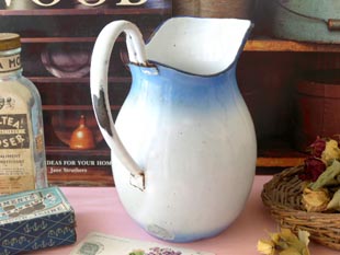 たホウロウ製のブルー&ブランシュロゼビオラピシェです。ジャピーフレール社はフランスでオルロー