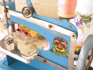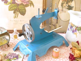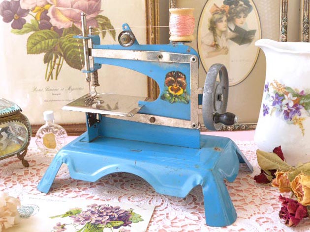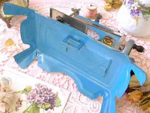 カラーのフランセーズブルーのマシーヌクードゥルジュエ(トイソーイングマシーン)で、本体にはポープ
