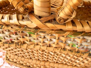 写真のようにフタの4箇所のロタンの留が欠損してロタンの色に似たイエローオーカーの紐でとても丁寧