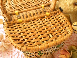 おそらく1930年代にフランスで製造されたローズフルールピクニックロタンオジエパニエです。こちらは