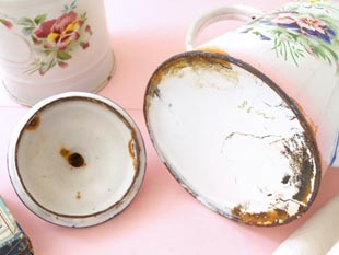 なく発色が良くきれいです。その他、多少のホウロウの剥がれやキズや汚れなどありますが古いものにし