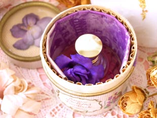 ロッパでとても有名な香水だったようです。こちらはヴァイオレットのリボンが付いた筒型のパルファン