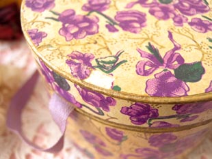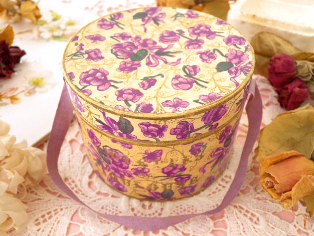 パルファンボワットで、フタと本体にはヴィオレットの花がデザインされて本体の正面にはゴールドで