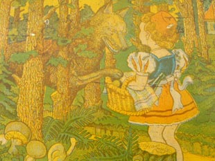童話のルプティシャペロンルージュ(赤ずきんちゃん)のストーリーのシーンがデザインされたドール(ゴール