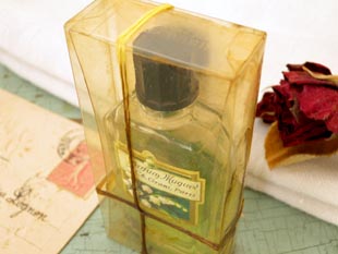 のヴェール(緑色)のパルファンで、ジョーヌ(黄色)の紐で結ばれた透明なプラスチック製のボワット(ボック