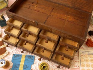 丸い取っ手の付いたブトン用の引き出しが12個もあり使い勝手が良くオシャレでとてもいい感じです。ま