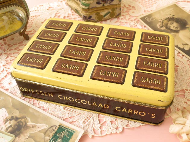 側面にはシルバーでDriessen Chocolade Carro's(ドリーセンショコラーデカルロ) Made in Rotterdam,