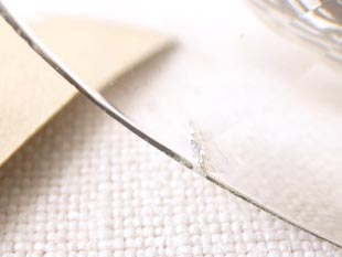 写真のように底面のヴェールに欠けやヒビのように見える部分が一箇所ありますが、これは製造時に