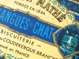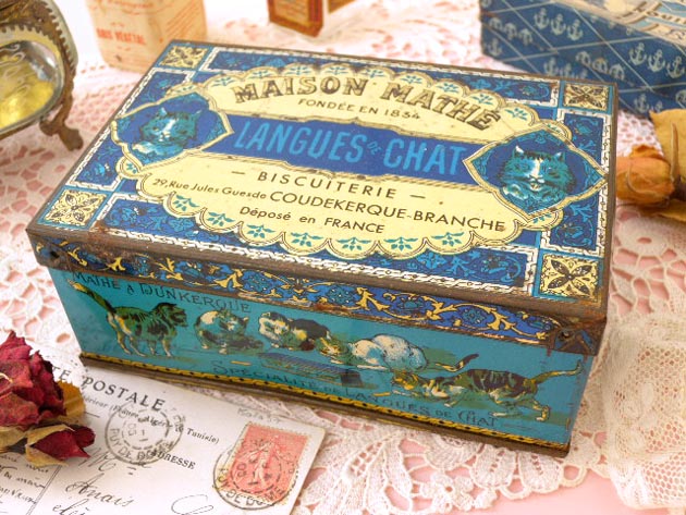 シャ(猫の舌)というビスキュイテリ(ビスケット)が入っていたエタン(ティン)製のメゾンマテーラング・