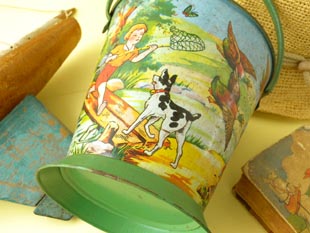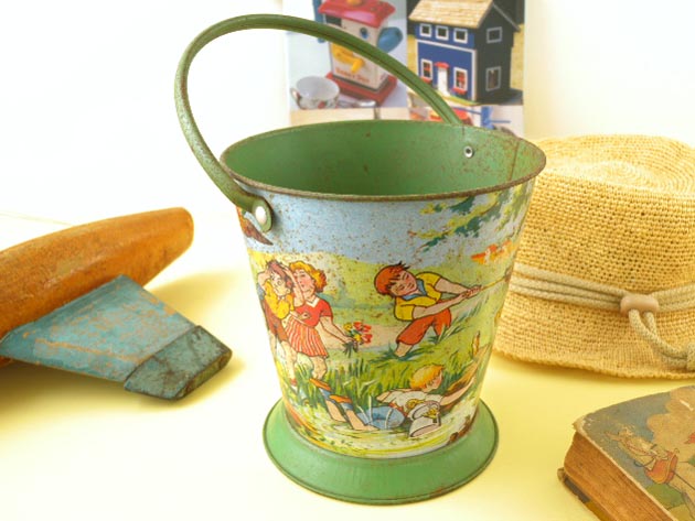 アンファン(チャイルド)用のソー(バケツ)で、本体にはおそらく夏のバカンスにパリ郊外の野原の川辺でア