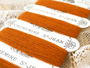分けて巻かれたブランクレア(ライトブラウン)のライネフィル(ウールスレッド)で、カルトにはCachemire