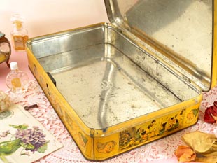 わり頃から1940年代の初め頃に製造したビスキュイ(ビスケット)が入っていたエタン(ティン)製のブラン