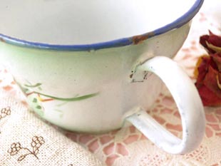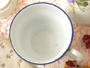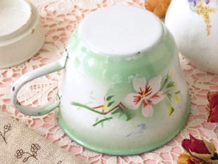 たホウロウ製のヴェール&ブランシュロゼパンセカフェタッセです。ジャピーフレール社はフランスでオ