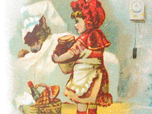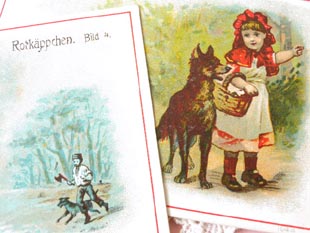 Rotkappchen(ロートカピヘン/赤ずきんちゃん)のお話の楽しいイラストがデザインされたクロモ(トレー