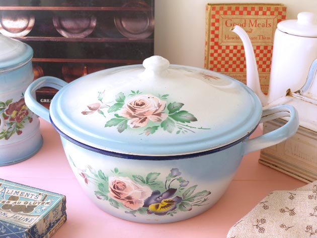 ジャピーフレール社がおそらく1920年代に製造したホウロウ製のブルークレール&ブランシュロゼロー