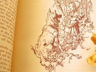 Kotkappchen(ロートカピヒェン/赤ずきんちゃん)の絵の表紙のグリム童話集のブーフ(ブック)で、中には