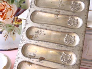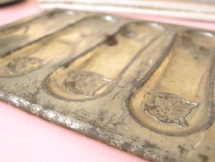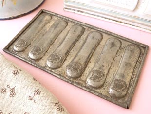 おそらく1920年代にフランスで製造したメタル製のシャショコラパティスリー6ムールです。こちらはと