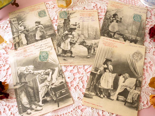 ポスタル(ポストカード)の5枚アンサンブル(セット)で、No.1のカルテにはChaperon Rouge, mon cheri,